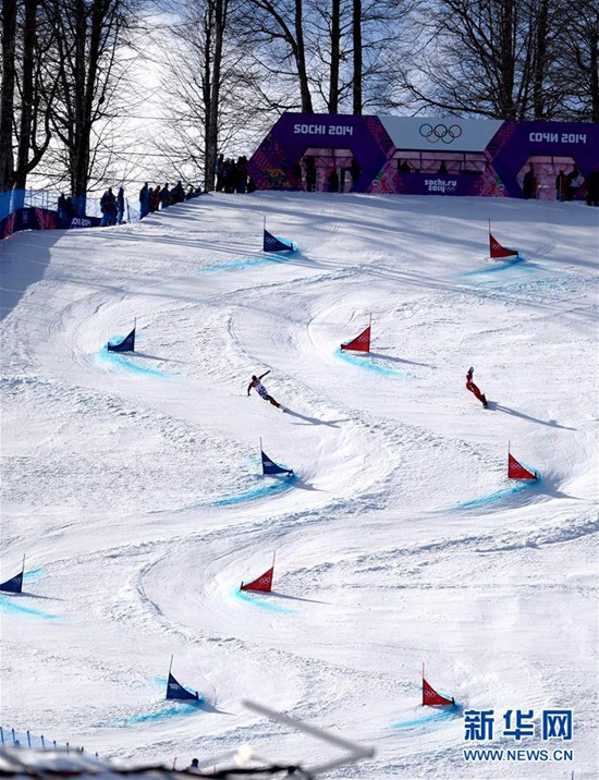 圖為2014年2月19日,俄羅斯選手維爾德(左)與瑞士選手加爾馬里尼在2014年索契冬奧會單板滑雪男子平行大回轉比賽中。最終,俄羅斯選手維爾德以1000分的成績奪得冠軍,瑞士選手加爾馬里尼獲得亞軍。新華社記者王松攝