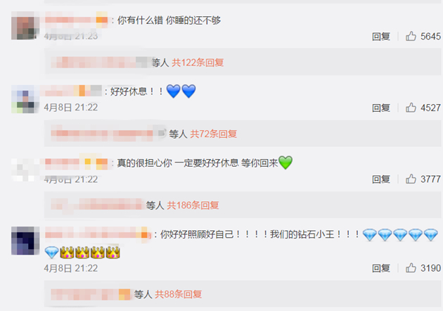 對此,粉絲紛紛對這則帖子留言道:“好好休息”、“好好照顧自己”。