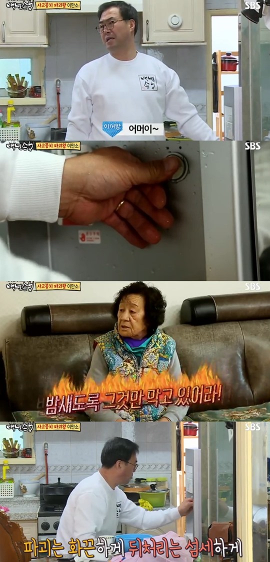 就連接個水,也發生了事故,飲水器被李女婿破壞掉了。一旁的岳母憤怒爆發,“李女婿,快收手吧”。
