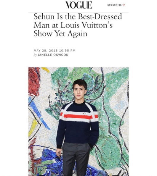 據悉,這是吳世勛第二次被選為該品牌最佳著裝。