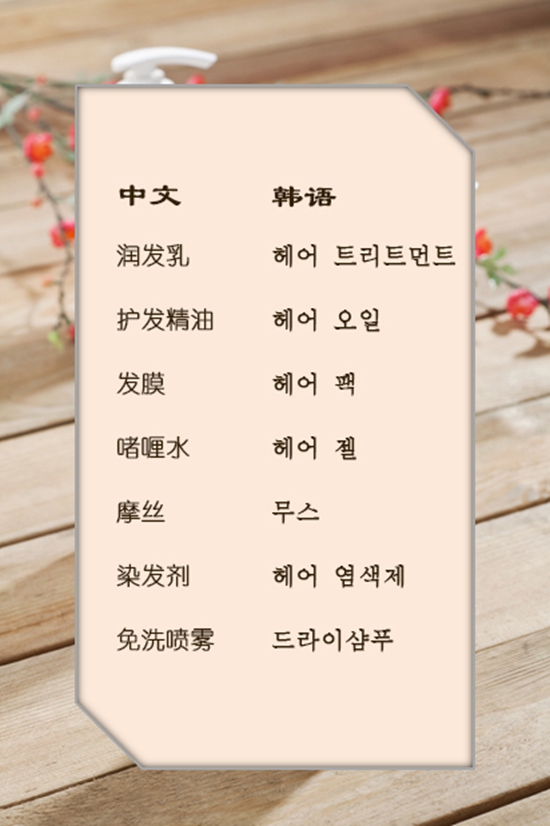 人民網韓國頻道為各位送上福利——《美妝達人的單詞本》,通過這檔新欄目能學習與美妝、洗護有關的各類韓語單詞,包括肌膚問題、護膚、美妝產品以及洗護產品用語。機智的小編將推出系列稿件,第六篇“護發篇”歸納了關于頭發護理產品的中韓對照名稱,一起學起來吧。