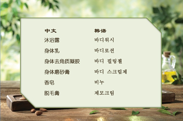 人民網韓國頻道為各位送上福利——《美妝達人的單詞本》,通過這檔欄目能學習與美妝、洗護有關的各類韓語單詞,包括肌膚問題、護膚、美妝產品以及洗護產品用語。第七篇“身體護理篇”歸納了關于身體護理產品的中韓對照名稱,一起學起來吧。