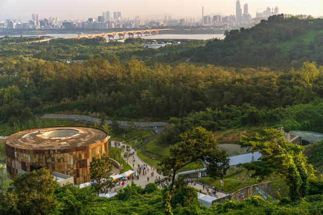 韓國首爾麻浦區的梅峰山腳下,錯落有致地分布著5個大小各異的儲油罐。這些儲油罐曾被政府列為一級保護設施,在過去41年里禁止市民靠近。如今,這些被廢棄的油罐經過改造,成為市民休閑娛樂的文化場所。