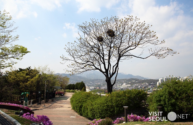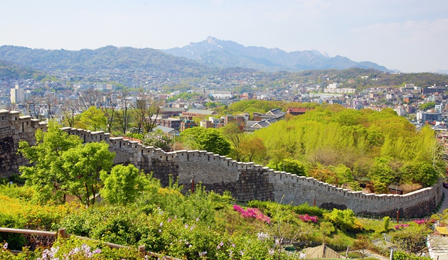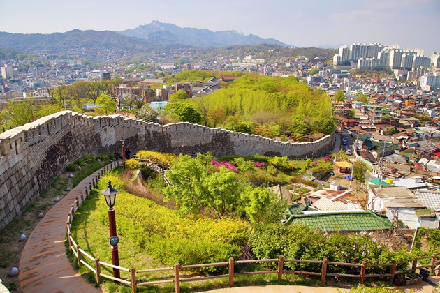 因模樣似駱駝脊背而被稱為“駱駝山”或“駱山”的山,完全由花崗巖巖石構成。早在朝鮮時,皇室貴族們就愛到駱山來游玩,但日本殖民統治及近代化歷程中肆虐般的城市開發,駱山大范圍遭到破壞。為了重新恢復駱山的綠色環境,首爾市政府積極推動復原工程,終于在2002年6月10日重新塑造了今天的駱山公園。位于城市中心地帶的駱山公園,也是一處歷史遺址,可以俯瞰整個首爾。