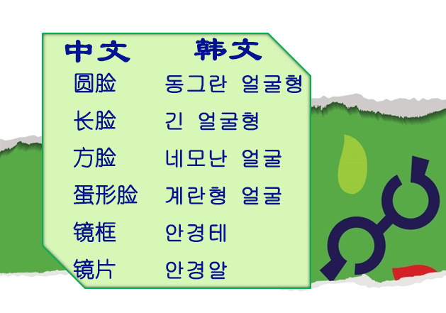 人民網韓國頻道為各位送上福利——《美妝達人的單詞本》,通過這檔欄目能學習與美妝、洗護有關的各類韓語單詞,包括肌膚問題、護膚、美妝產品以及洗護產品用語。第十篇“鏡框篇”歸納了各種臉型和鏡框的中韓對照名稱。