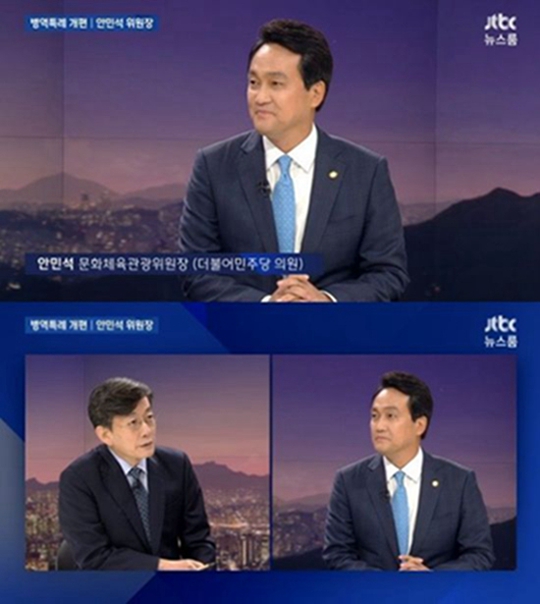 國執政黨共同民主黨議員安敏錫(音譯)受邀出演JTBC《新聞間》,澄清之前自己關于防彈少年團免兵役相關的言論“并不是要求給防彈少年團免除兵役的特權,是想強調韓國免兵役制度的公平性!