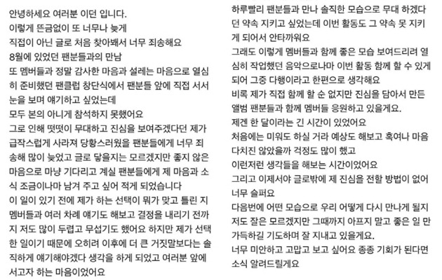 對此,金曉鐘發表長文回應,針對粉絲俱樂部創團紀念活動的缺席事件,向粉絲致歉。另外,金泫雅同樣缺席各種活動,隨后通過社交媒體發文安慰粉絲。被公司辭退的兩人在未來事業上會如何發展?備受粉絲關注。金泫雅和金曉鐘從經紀公司出面否認戀愛、到私自認愛,再到被公司辭退一共經歷了42天。