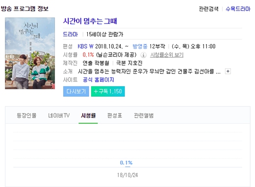 人民網訊 24日晚,由金賢重、安智賢主演的KBS W新水木劇《時間停止時》迎來首播。據收視率調查公司“尼爾森韓國”25日提供的數據,《時間停止時》首集平均收視率為0.1%,創韓國最低收視紀錄。