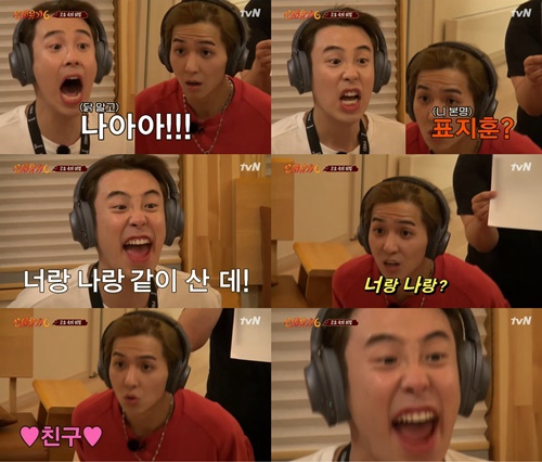 在“寂靜中的吶喊”猜詞游戲中,表志勛看到提示板上的二人曾一起生活過的“公寓”一詞便開始提示宋旻浩。表志勛高喊著:“我”,而宋旻浩卻聽成了“雞”,不甘心的志勛再次大叫“我”,而旻浩再次猜錯令志勛氣絕,在一旁觀戰的姜虎東等人笑得合不攏嘴。