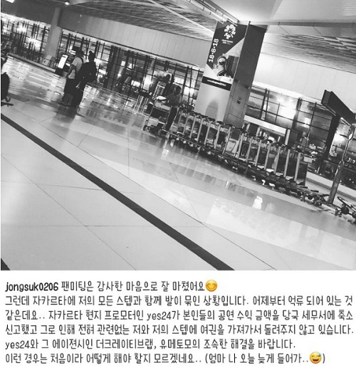 李鐘碩經紀公司也發聲明稱,“由于當地承辦方Yes24業務問題導致李鐘碩無辜受牽連滯留當地,讓粉絲們擔心了。李鐘碩比起自身安全更擔心趕不上電視劇拍攝日程。Yes24給我們的說法反反復復,我們將密切關注他們的動態,對引發此次風波的相關方,我們將依法追究其責任。向擔憂我們的各位國民再次表示歉意,將努力工作報答大家的支持與關心!