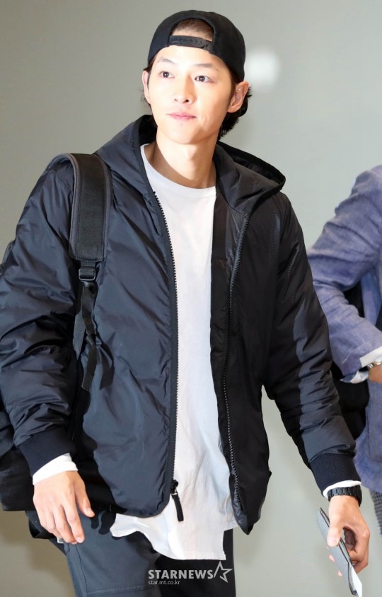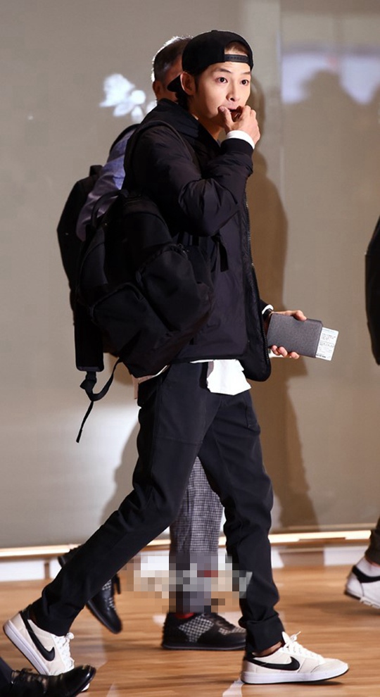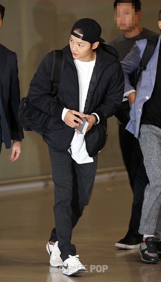 5/9人民網訊 12月13日上午,演員宋仲基現身仁川國際機場飛赴香港出席MAMA盛典。當日,宋仲基頭戴鴨舌帽,身穿黑色短款羽絨服及運動褲,一身休閑裝扮卻又不失帥氣。