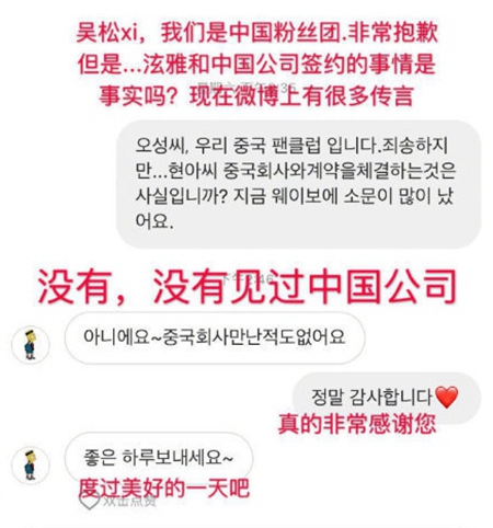 對此,泫雅粉絲團向泫雅經紀人吳松求證,得到對方否認,表示并未接觸中國公司。