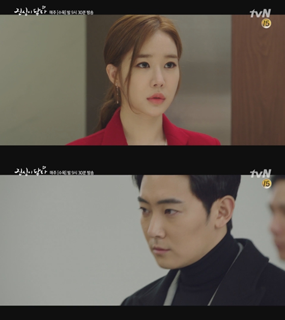 為了避免律師事務所的同事懷疑他們的關系,權政祿提議二人要小心行事。然而二人在辦公室接觸的場面還是被其他同事看到了,真心立刻將政祿推到一遍,把同事嚇得不輕。政祿送真心回家,被經紀人撞個正著,問道:“今天為什么把真心送回家了呢?”令真心窘得不行。