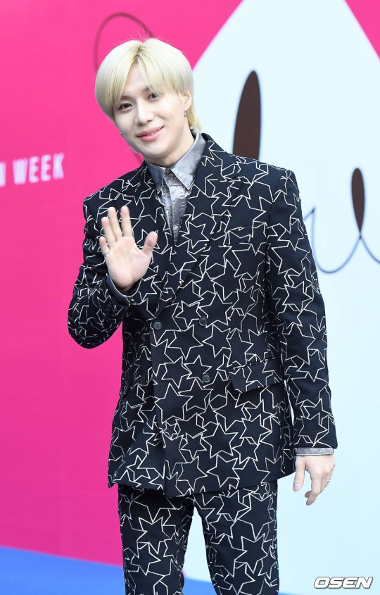 8/10人民網訊 24日下午,韓國人氣男團EXO成員吳世勛、SHINee成員泰民出席了在東大門設計廣場(DDP)舉行的首爾時裝周。當日,泰民在黑色星星圖案西裝的加持下顯得耀眼吸睛,世勛則走起低調路線,身著褐色格紋西裝依舊帥氣迷人。(圖為SHINee泰民)