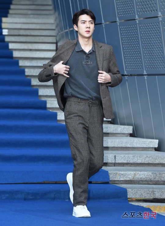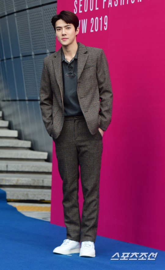 9/10人民網訊 24日下午,韓國人氣男團EXO成員吳世勛、SHINee成員泰民出席了在東大門設計廣場(DDP)舉行的首爾時裝周。當日,泰民在黑色星星圖案西裝的加持下顯得耀眼吸睛,世勛則走起低調路線,身著褐色格紋西裝依舊帥氣迷人。(圖為EXO吳世勛)