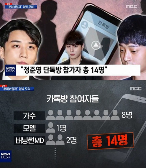 人民網訊 據28日晚韓國MBC新聞《NEWS DESK》報道,在上交的手機中獲悉,鄭俊英的聊天群共有14名成員。其中有八位歌手,兩名Burning Sun的職員,一名模特,Yuri控股的劉代表以及鄭俊英的幾個朋友。新發現的藝人有K某、J某兩位歌手和L姓模特。