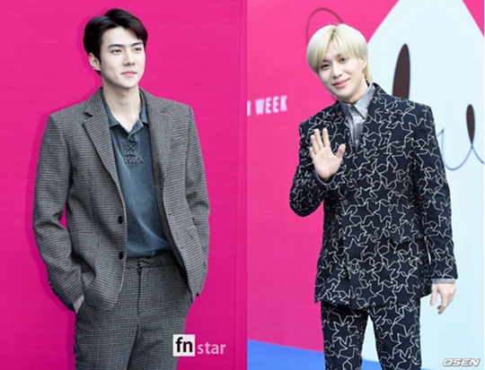 3月24日下午, EXO成員吳世勛、SHINee成員泰民出席了在東大門設計廣場(DDP)舉行的首爾時裝周。當日,泰民在黑色星星圖案西裝的加持下顯得耀眼吸睛,世勛則走起低調路線,身著褐色格紋西裝依舊帥氣迷人。