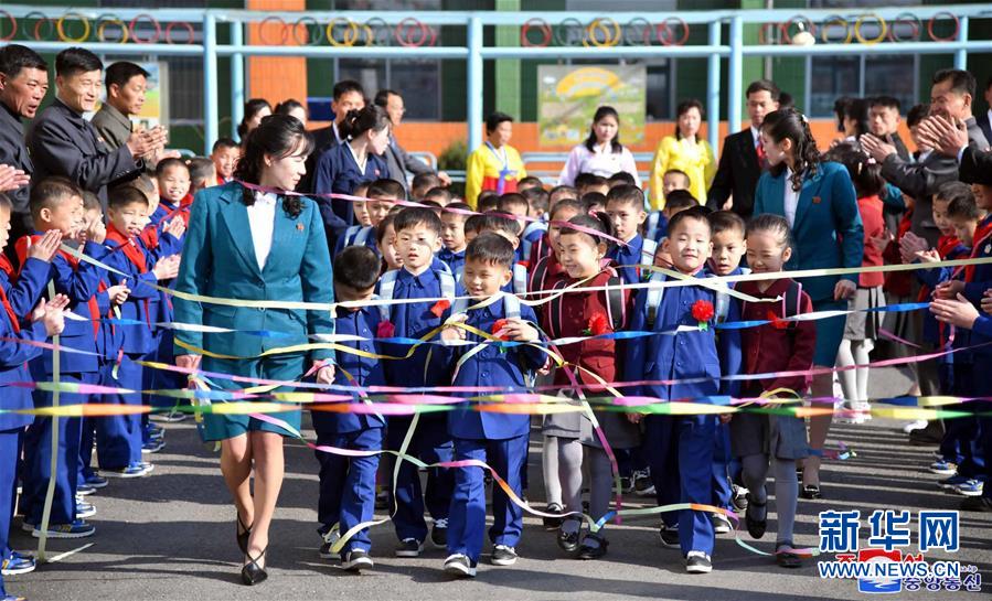 2/2朝中社4月1日提供的照片顯示,學生們參加開學典禮。據朝中社報道,朝鮮2019年新學年于4月1日開始,全國各地舉行開學典禮。