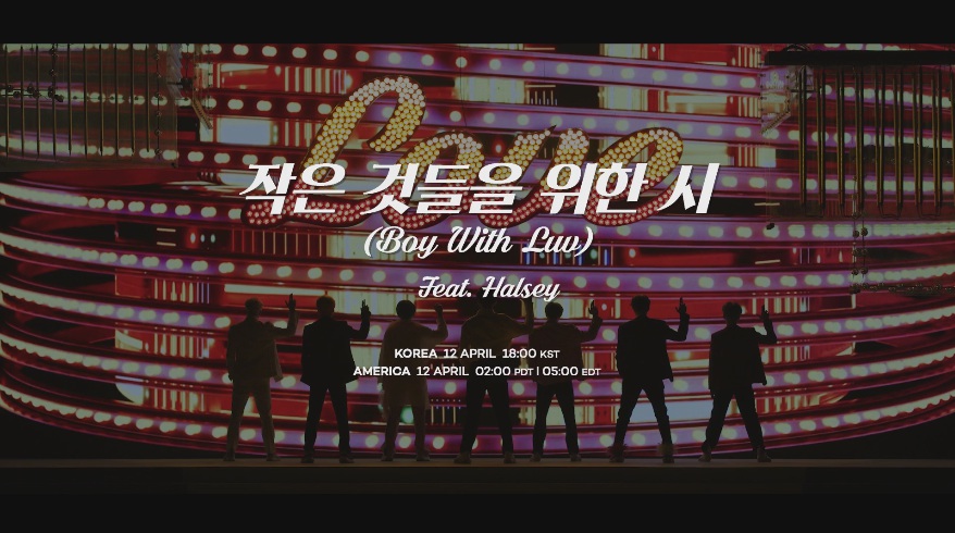 5/7人民網訊 8日凌晨,韓國人氣天團防彈少年團在官方網站及社交媒體主頁上公開了與美國人氣歌手Halsey合作的歌曲《Boy With Luv》預告片。在公開的預告片中,Halsey仿佛有約在身似的看著表,從售票處中走出,與防彈少年團成員們進行短暫對視后走開了。屏幕中隨即出現七名成員的背影以及“Boy With Luv”的字樣。Halsey將與防彈少年團有怎樣的合作引來粉絲們的好奇。此外,新輯《MAP OF THE SOUL : PERSONA》將于4月12日在全球同步發售,隨后BTS將于13日出演美國全國廣播公司(NBC)招牌綜藝節目《周六夜現場》(SNL),首次表演新歌。