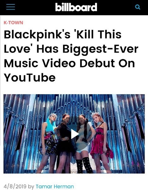 ● 近日,韓國女團BLACKPINK的新歌《KILL THIS LOVE》MV在視頻網站優兔(YouTube)刷新24小時播放量和最短時間播放量破億次紀錄,被英美各大媒體爭相報道。