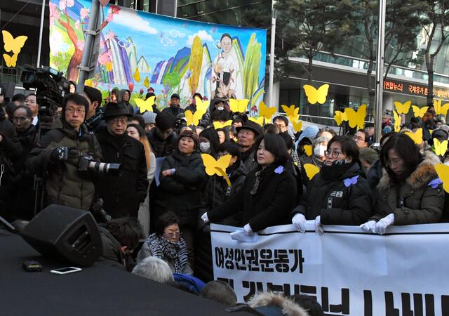 圖為2019年2月1日韓國慰安婦受害者金福童的遺體告別儀式。