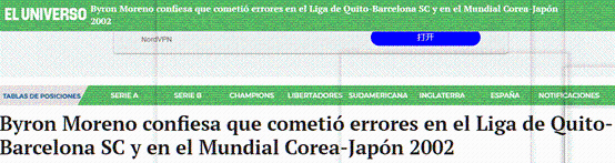 厄瓜多爾裁判莫雷諾承認,自己在2002年世界杯韓國對陣意大利的比賽中犯規,“那場比賽黃善洪對贊布羅塔的犯規應該是紅牌!