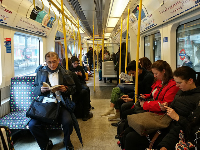 經過記者觀察,乘客們在地鐵上看書、聽歌、玩游戲、看劇、化妝、睡覺的都有。溫蒂·洛克希對記者表示,她住在倫敦東邊,每天到倫敦西部上班需要45分鐘。一般會在地鐵上看書、聽音樂和化妝,有時也會看資料學習、畫畫等,偶爾觀察地鐵上有趣的人。她說,自己從來不會在地鐵上玩游戲,長時間的通勤是她的學習時間。