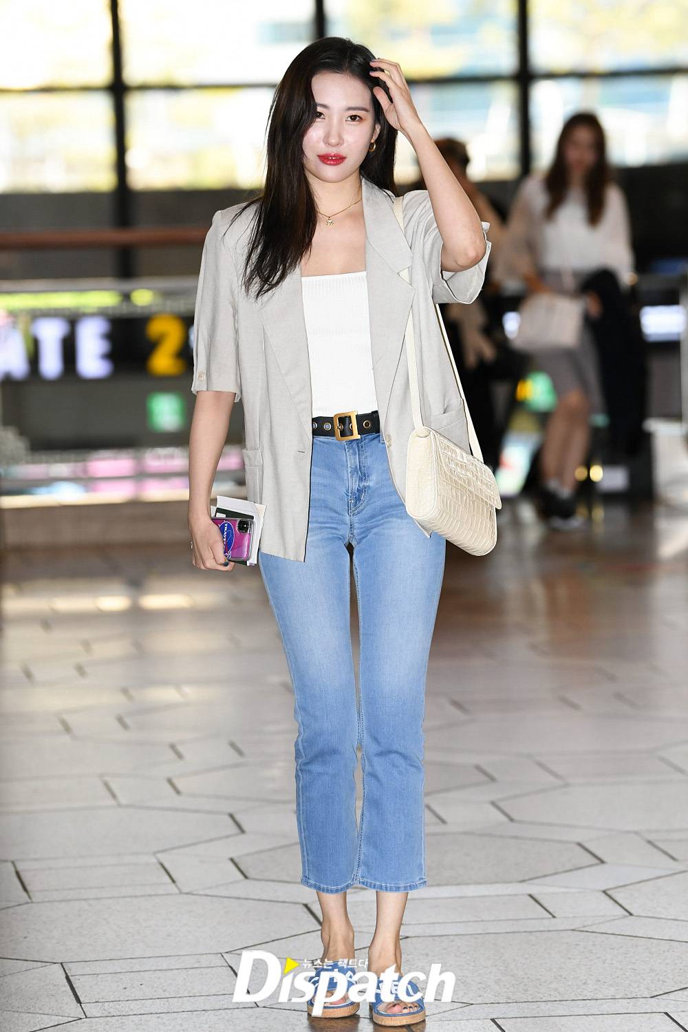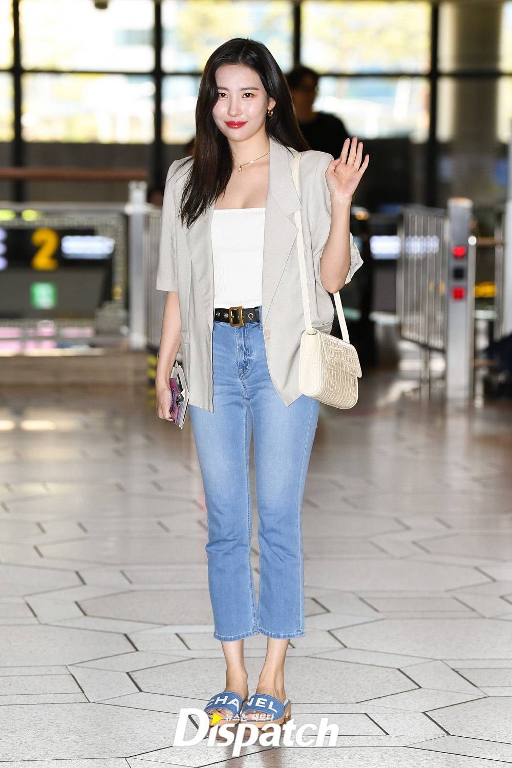 5/5人民網訊 韓國歌手宣美22日下午經由金浦國際機場,飛赴日本東京參加活動。當日,宣美身穿淺色休閑西裝搭配牛仔褲,腳踩拖鞋,整體造型煥發時尚魅力。宣美又細又直的一雙“鉛筆腿”實力搶鏡,令人垂涎。