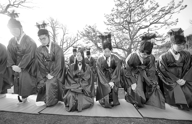 參加入學儀式穿傳統儒生服的成均館大學新生