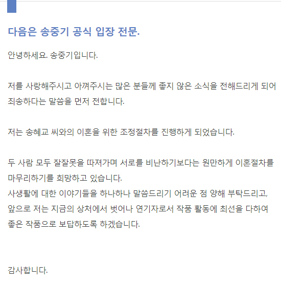 人民網訊 據韓國媒體《中央日報》6月27日報道,韓國演員宋仲基26日已經通過首爾家庭法院向宋慧喬提出離婚調解申請。