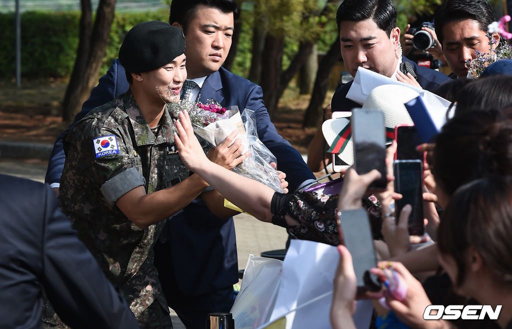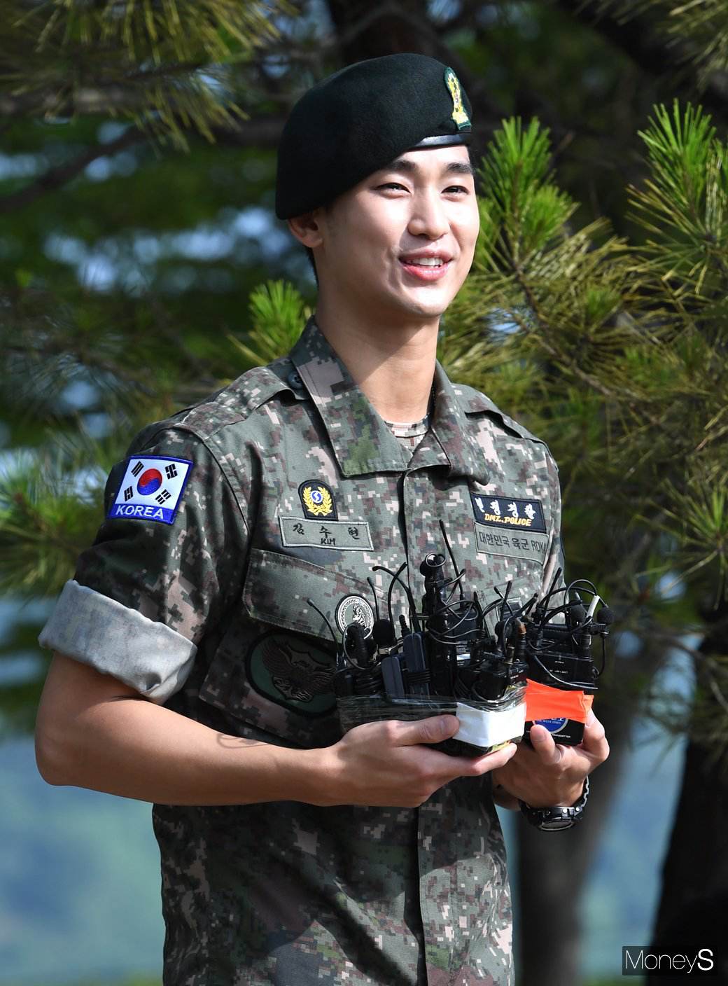 2/8人民網訊 7月1日上午,韓國人氣男星金秀賢在京畿道坡州市臨津閣舉行退伍儀式。當日,金秀賢帥氣現身活動,并向迎接自己歸來的粉絲們熱情問好。金秀賢于2017年10月23日入伍,在第一師團偵察大隊以現役身份服役。服役期間,他表現突出,并提前晉升上等兵和兵長。金秀賢于2007年出道,曾主演《DREAM HIGH》《擁抱太陽的月亮》《來自星星的你》等多部熱劇。