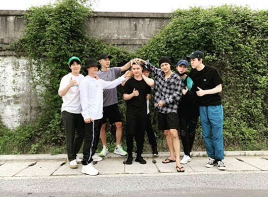 張藝興等送都暻秀入伍 EXO成員再現摸頭殺