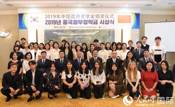 2019年中國政府獎學金頒獎儀式2日在中國駐韓國大使館舉行。攝影:人民網記者 馬菲