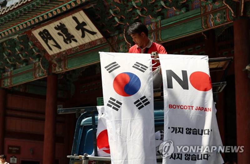 據首爾中區辦事處一位官員介紹,他們計劃在首爾地區發起一場聲勢浩大的抵制日貨運動,首先作為試點在德壽宮大韓門上懸掛抵制日本條幅,后期視情況再決定是否要在22條首爾主路上懸掛太極旗幟及1100個抵制日本運動條幅。此外,辦事處正在考慮是否要在明洞購物街等繁華地帶懸掛這些條幅。
