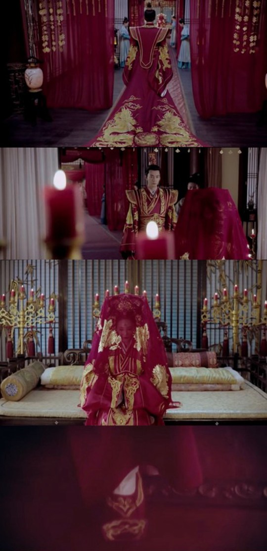 在電視劇《東宮》中,小楓蓋著紅蓋頭,將匕首藏于袖中企圖刺殺李承鄞。李承鄞在揭開紅蓋頭后看到了小楓袖中的匕首,十分氣憤,于是轉身離開。