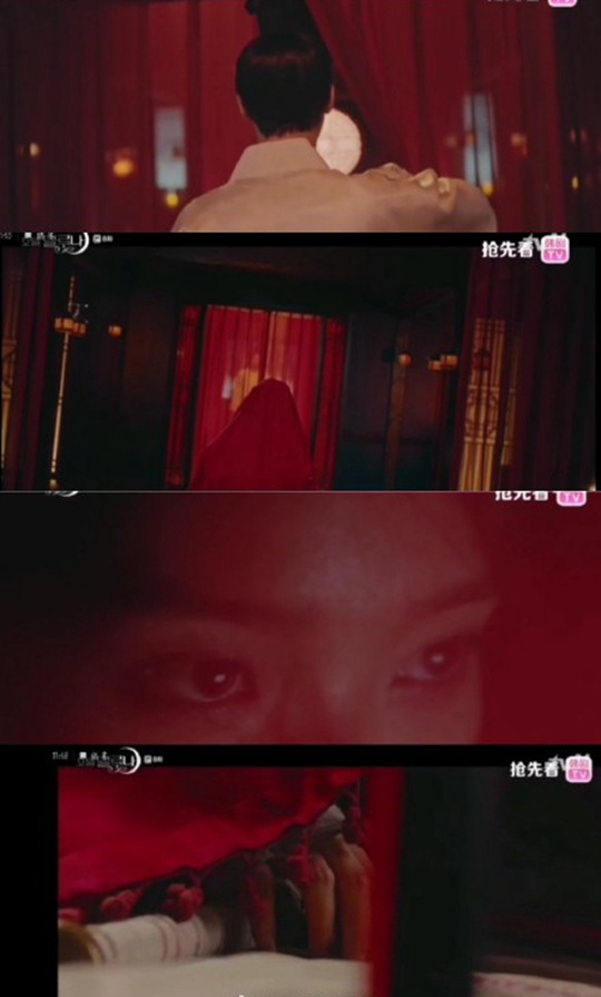 《德魯納酒店》中,張滿月殺死了公主后穿上喜服坐在窗邊等高清明,高清明走近張滿月時,滿月拔劍刺向了他。