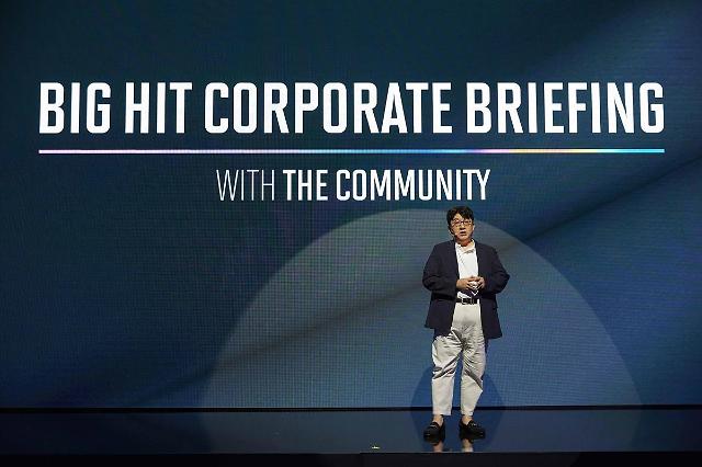 21日,防彈少年團所屬娛樂公司BigHit娛樂代表房時爀在首爾舉行公司說明會,發布事業計劃!緢D片提供 韓聯社】