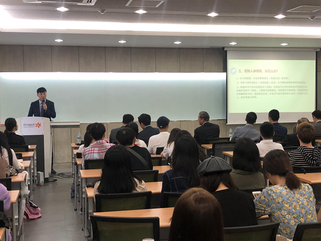 王魯新公參在發言中表示,近年來,來韓就讀的中國留學生數量持續上升,各類留學人員總數已超過7萬人,同時涉留學生各類安全隱患和風險也在增加。中國駐韓國使館高度重視在韓中國留學生的安全與合法權益,多渠道多形式為同學們提供領事保護與協助服務。希望大家提高安全防范意識,增強自我保護能力,真正實現“平安留學、健康留學、文明留學、成功留學”。