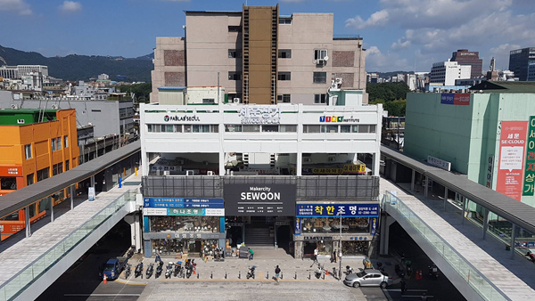 世運商街位于首爾市鐘路區,總長約一千米,始建于1966年,1968年正式投入使用。20世紀80年代開始,隨著首爾市發展重心向江南區轉移,電子商街入駐龍山后,世運商街逐漸走向沒落。直到2014年,首爾市為振興這條商業街,啟動了“重建世運專案”。2017年9月19日,世運商街大部分重建工作完成。