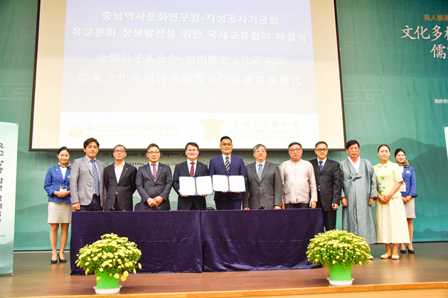 忠清歷史文化研究院樸秉熙院長與至圣孔子基金會孔垂長奉祀官簽訂合作協議。