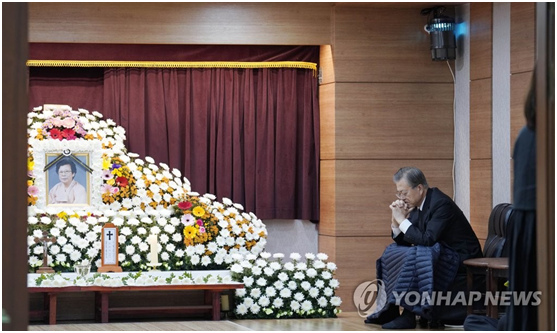 與此同時,青瓦臺方面表示,文在寅尊重逝者意愿,只同家人一起低調治喪,謝絕唁電和花圈。