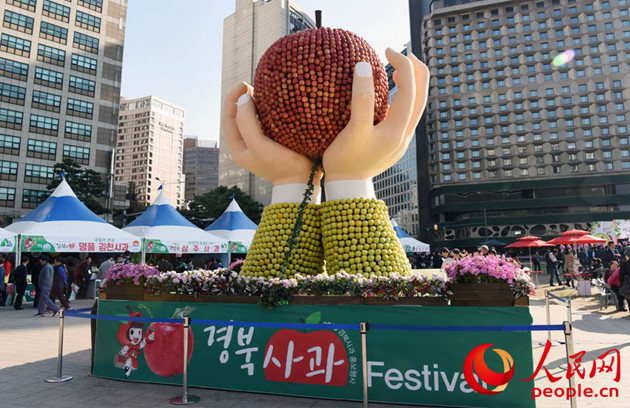 人民網首爾11月5日電 為期三天的第14屆“2019慶尚北道蘋果節”從本月5日起在韓國首爾廣場舉行。