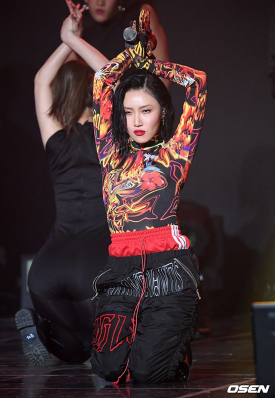 人民網訊 14日,韓國人氣女子組合MAMAMOO在首爾東大門區會基洞慶熙大學和平殿堂舉行第二張正規專輯《reality in BLACK》Showcase,并進行了熱烈帥氣的演出。