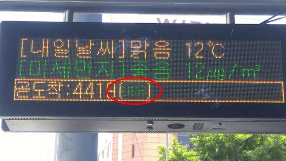 韓國公交車站的提示牌也非常地貼心,上面會顯示車內的擁擠程度,一般分為空閑、一般、擁擠三個等級。乘客可以通過信息牌得知公交車內座位情況。