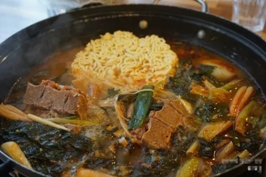 辣度相當于三個辛拉面,湯里可以感受到濃香的花生味,從一定程度上中和了辣味,但吃完后辣度向全身各個部位擴散。