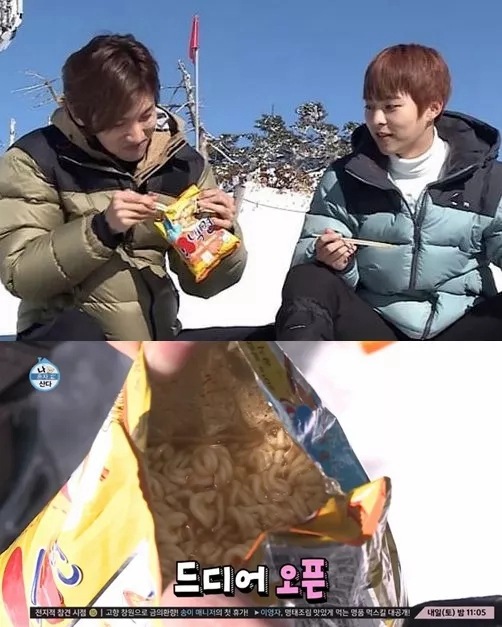 東方神起沈昌珉在節目中展現了他作為明星的另一面,直接向方便面袋中加熱水,扎住袋口將方便面泡開。