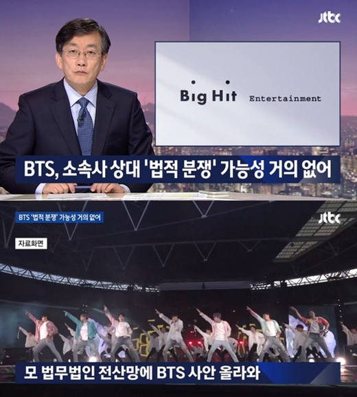 孫石熙在新聞節目《News Room》中表示,“本臺曾就防彈少年團與經紀公司Big Hit娛樂就收入分配問題接受法律咨詢一事進行報道,后經證實,實際上演變為法律糾紛的可能性幾乎為零!