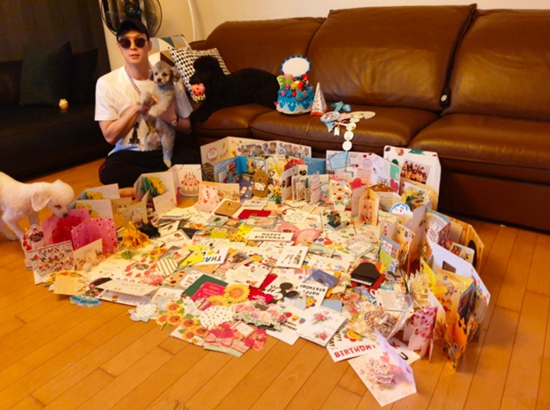 獲釋后,樸有天弟弟樸有煥通過社交媒體公開了哥哥的照片。照片中,樸有天面戴黑超,抱著寵物狗坐在粉絲們送的禮物和卡片中。