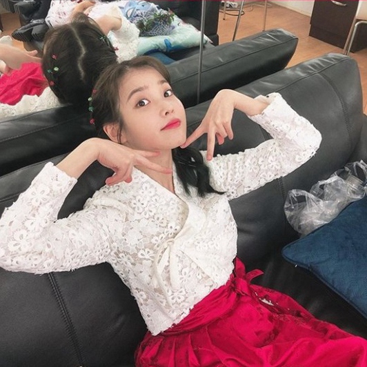 公開的照片中,李智恩身穿傳統韓服,頭上別著五顏六色的小發卡,雙手比出V字,模樣俏皮可愛,猶如一只可愛的小白兔。