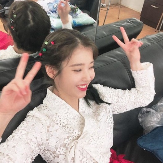 公開的照片中,李智恩身穿傳統韓服,頭上別著五顏六色的小發卡,雙手比出V字,模樣俏皮可愛,猶如一只可愛的小白兔。